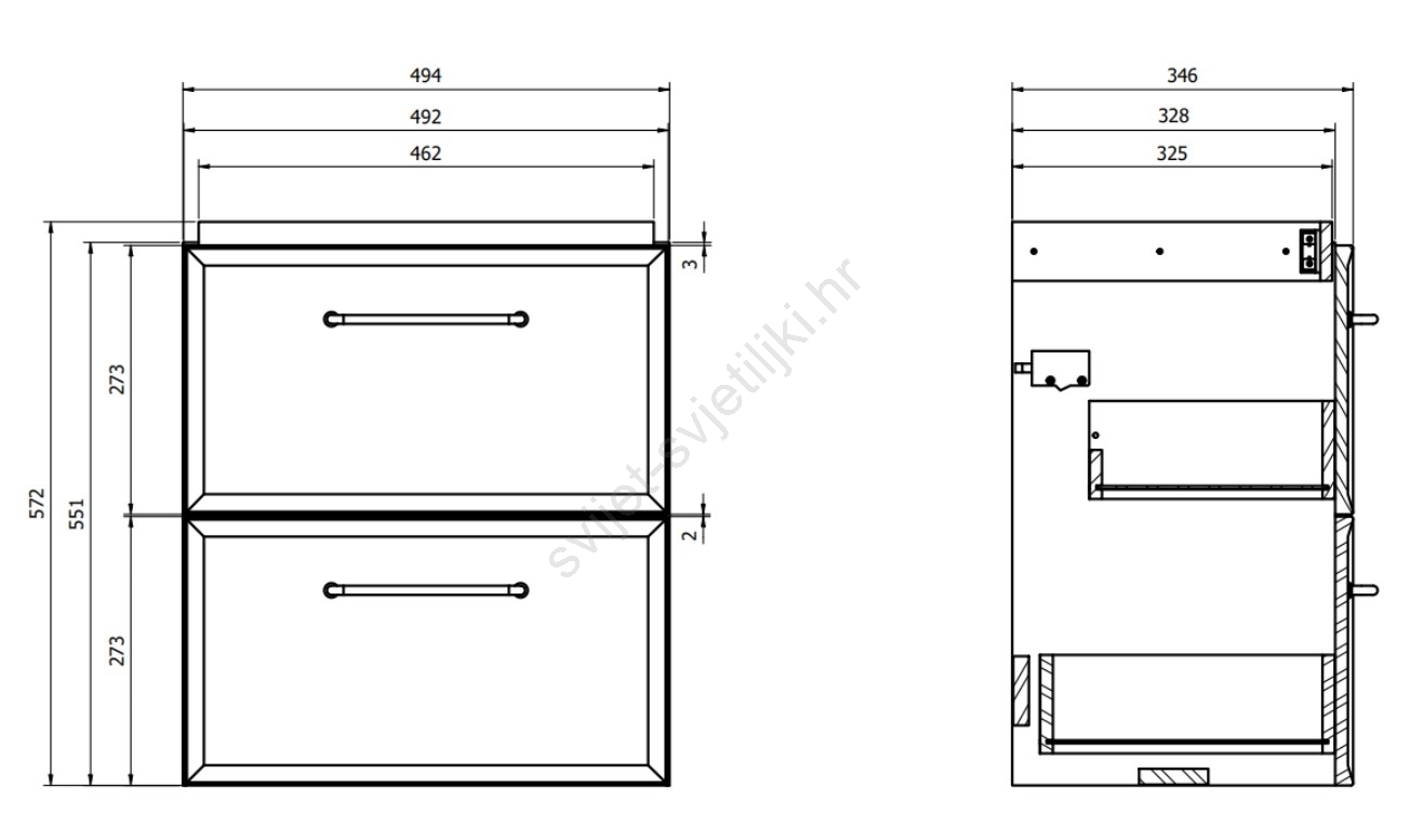• Ormarić ima dvije prostrane ladice s mekim zatvaranjem - meko zatvaranje.