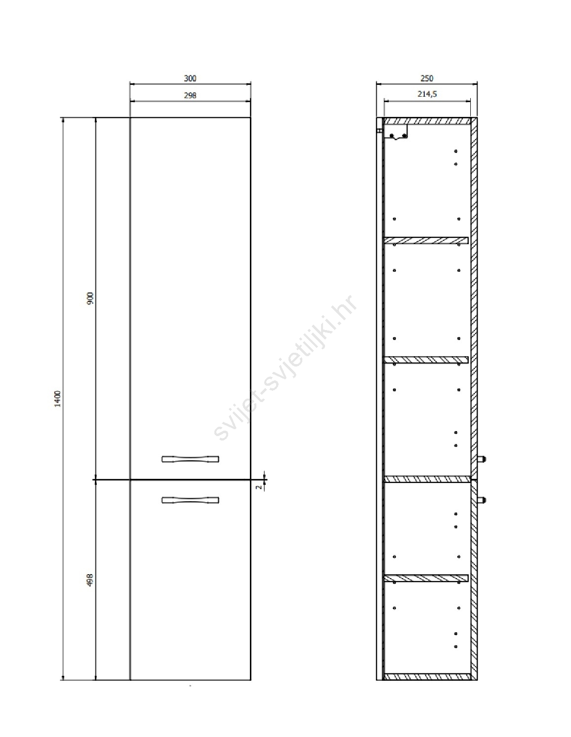 • Ormarić ima dvoja vrata sa sustavom mekog zatvaranja.