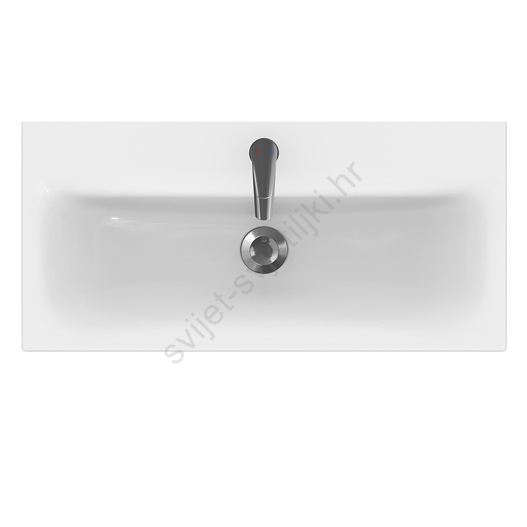 • Keramički umivaonik ima klasičan pravokutni oblik s otvorom za slavinu i preljevom.