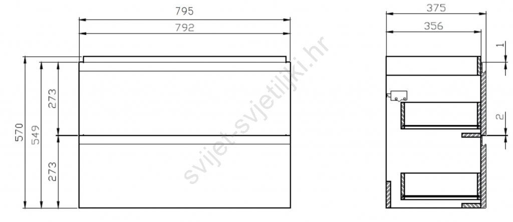 • Ormarić ima dva prostrana ladice s mekim zatvaranjem i skrivenim ručkama.