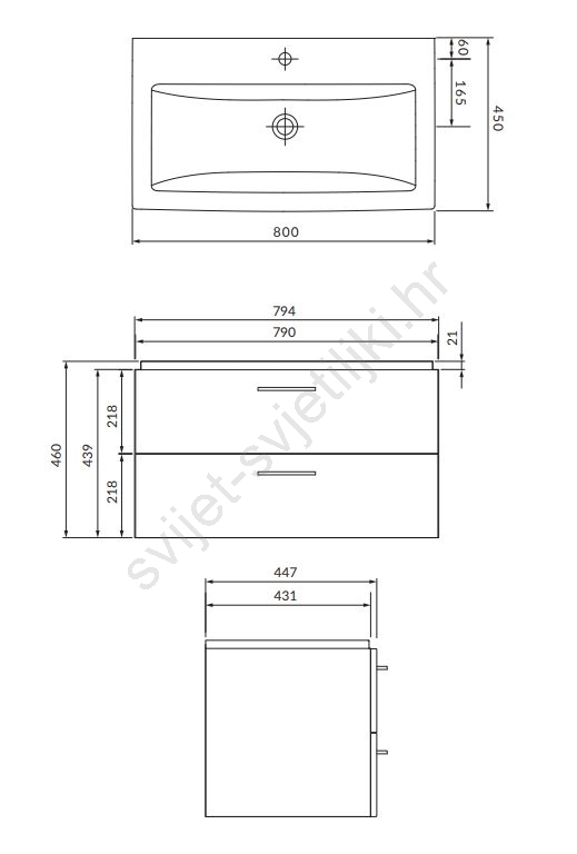 • Keramički umivaonik ima klasičan pravokutni oblik s otvorom za slavinu i preljevom.
