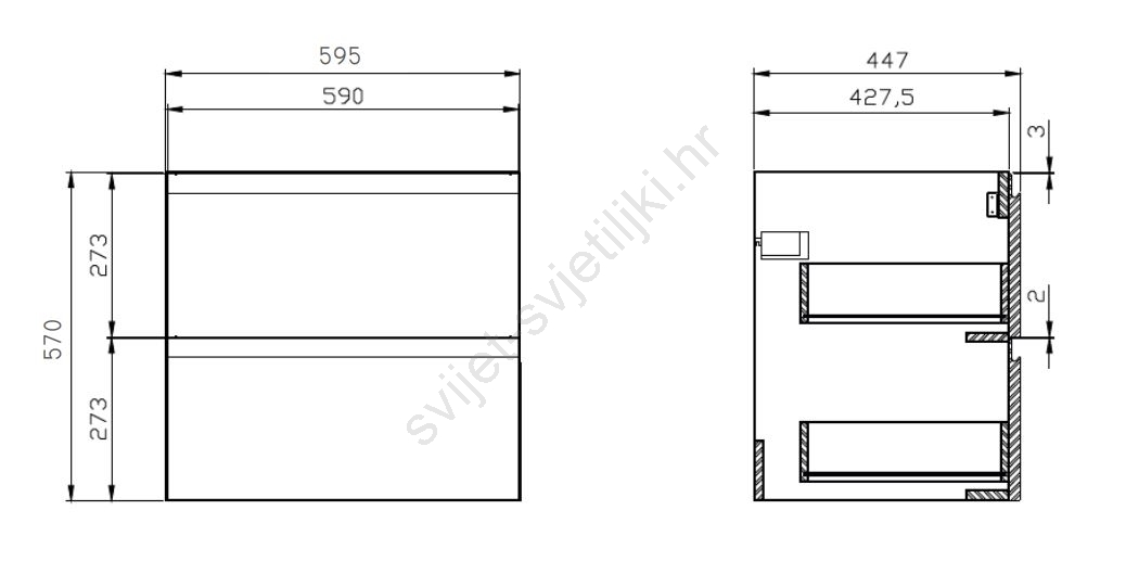 • Prednja ploča i korpus ormarića izrađeni su od 16 mm iverice s visokosjajnim bijelim lakom.