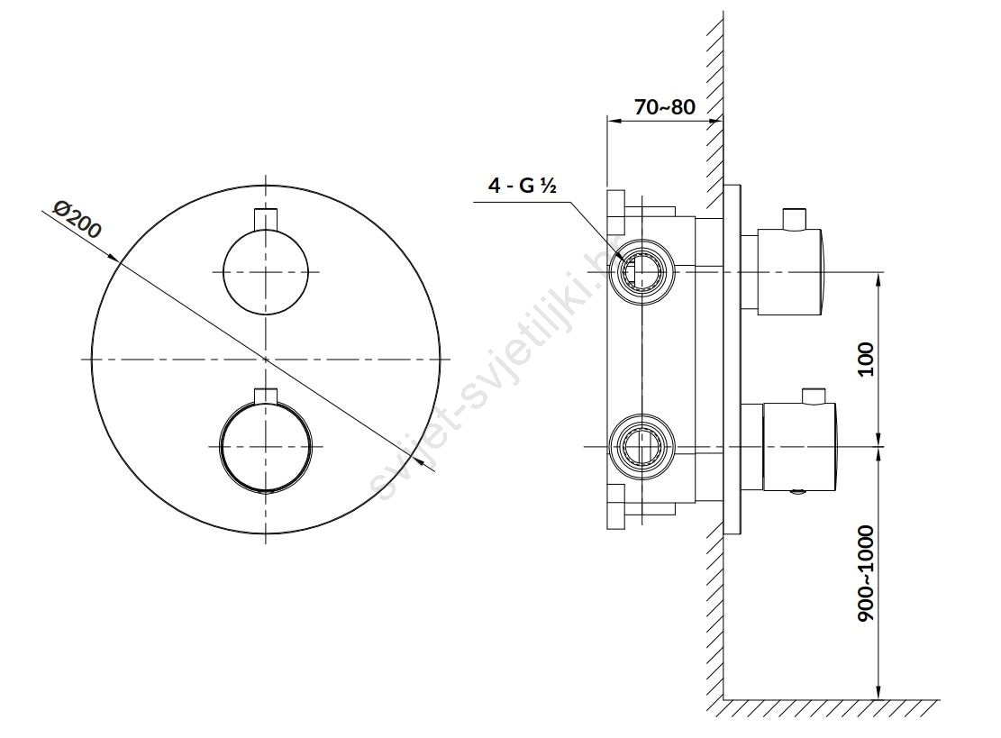 Cersanit S951-567 - Termostatska tuš baterija za ugradnju u zid ZEN crna