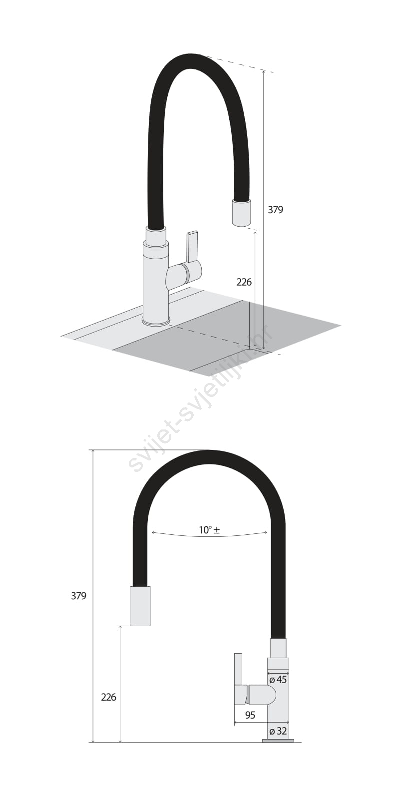 Concept BDC7138 - Slavina za sudoper s fleksibilnim izljevom, sjajni krom/crna