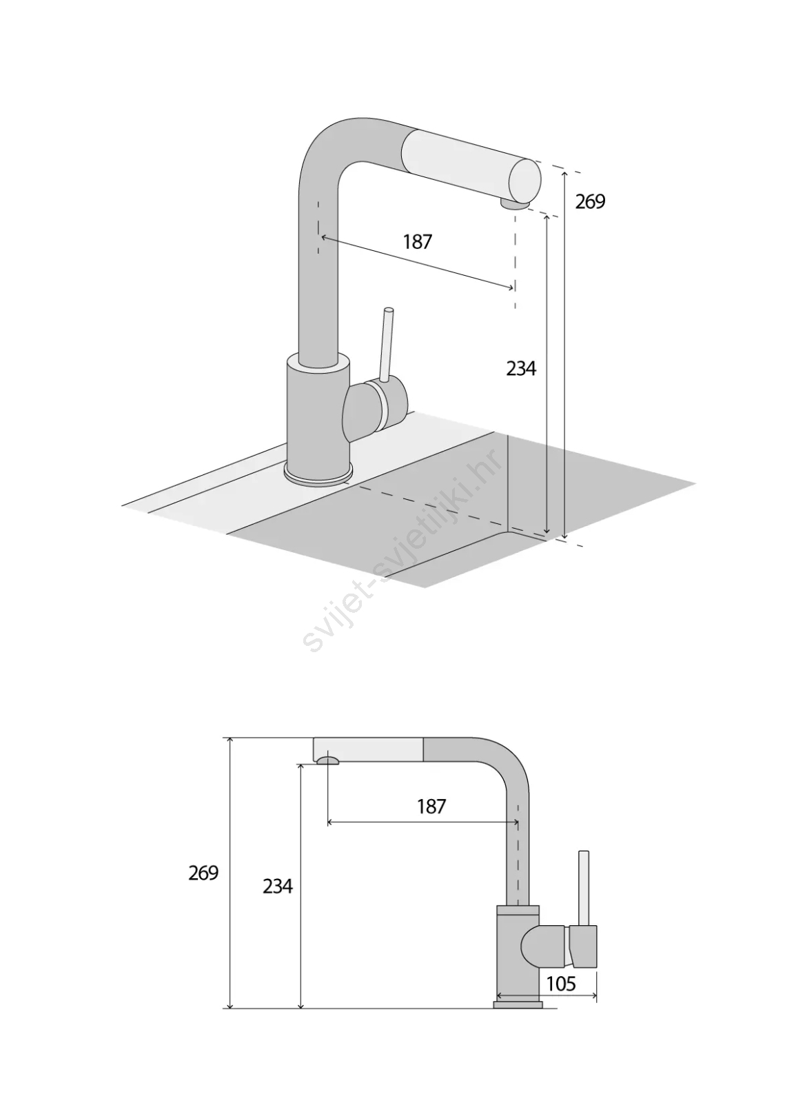 Concept BDG4527BC - Kuhinjska miješalica s izvlačivom prskalicom 26,9 cm granit/crna