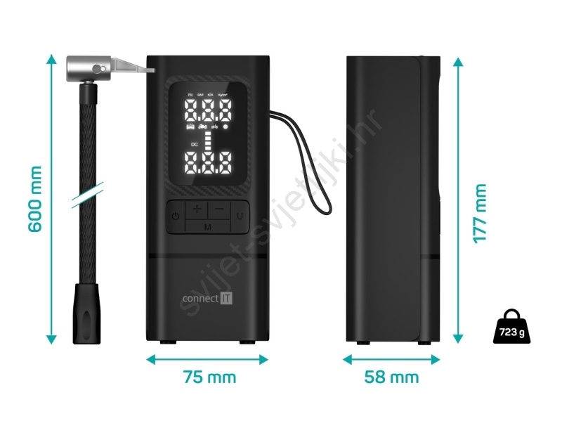 CONNECT IT CFF-4500-BK - Digitalni prijenosni kompresor AirFlow 80W/6000 mAh crni