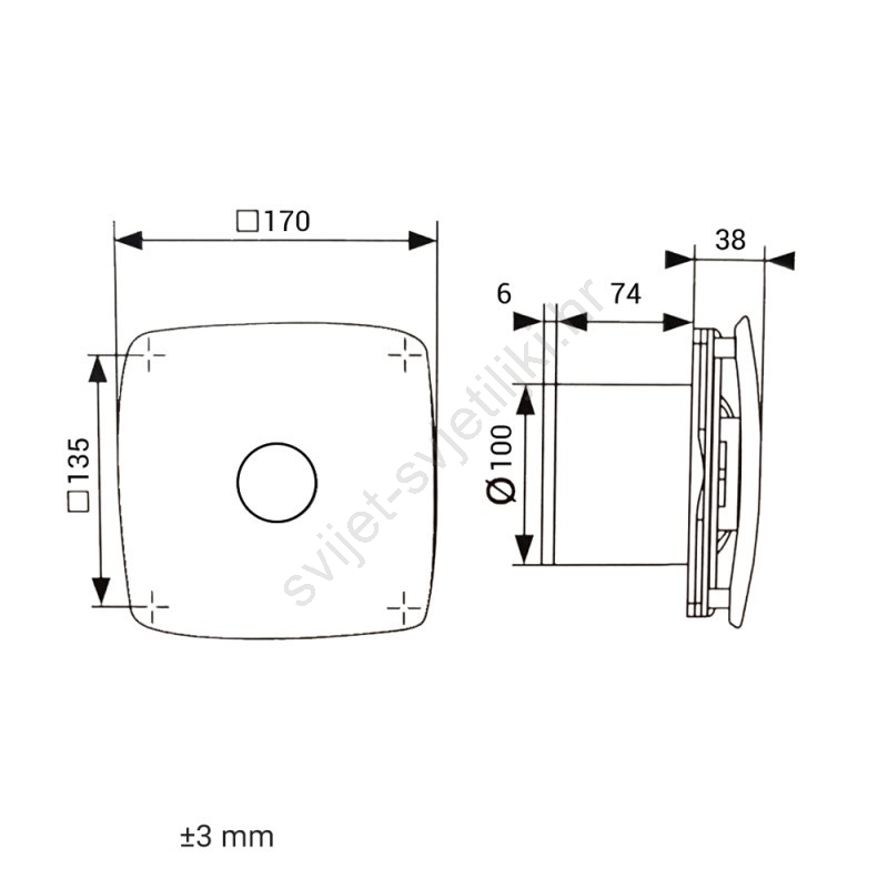 • Ventilator je kompatibilan s cijevima promjera 100 mm.