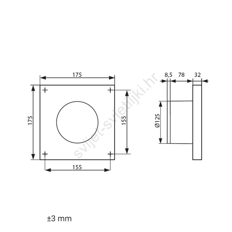• Ventilator je kompatibilan s cijevima promjera 125 mm.