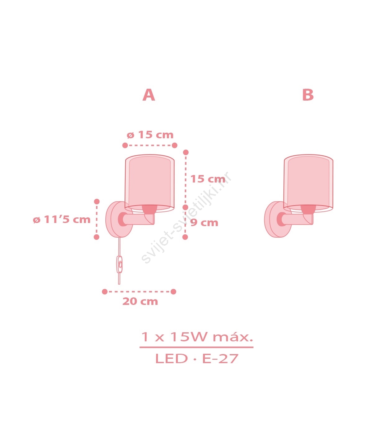 Dalber 41579S - dječja zidna svjetiljka BABY TEDDY 1xE27/15W/230V ružičasta