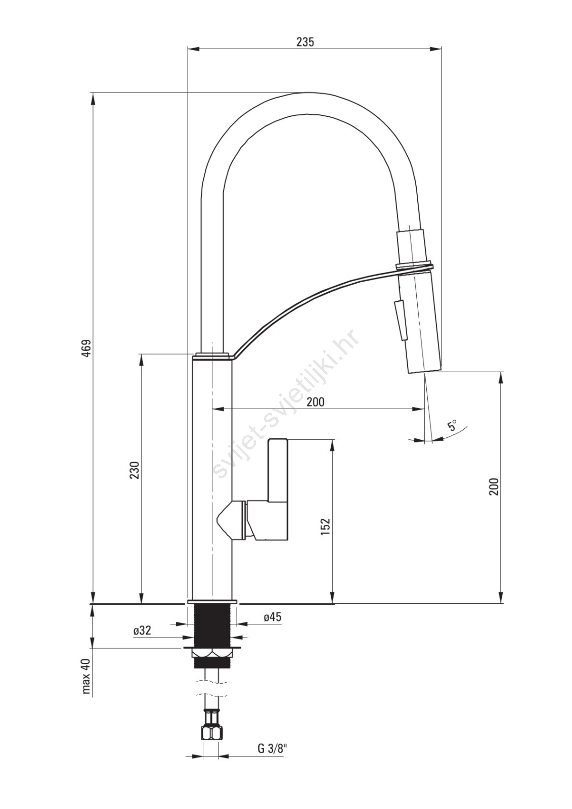 • Priključne cijevi duljine 45 cm uključene su u paket.