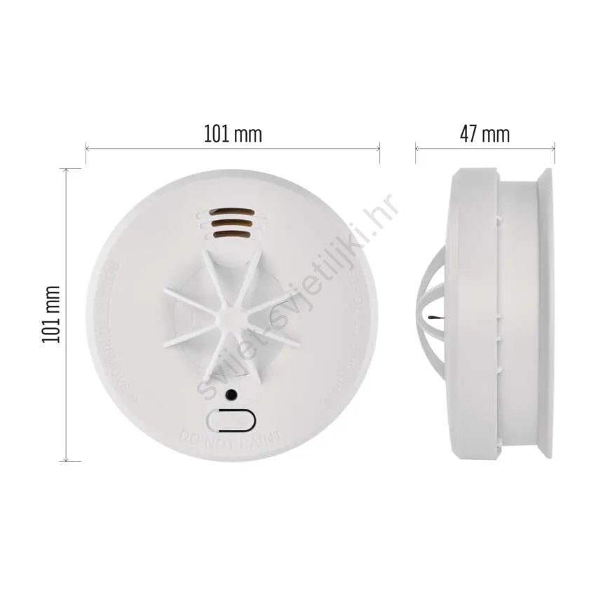 • Funkcije: gumb za testiranje, indikacija slabe baterije, utišavanje alarma (HUSH).