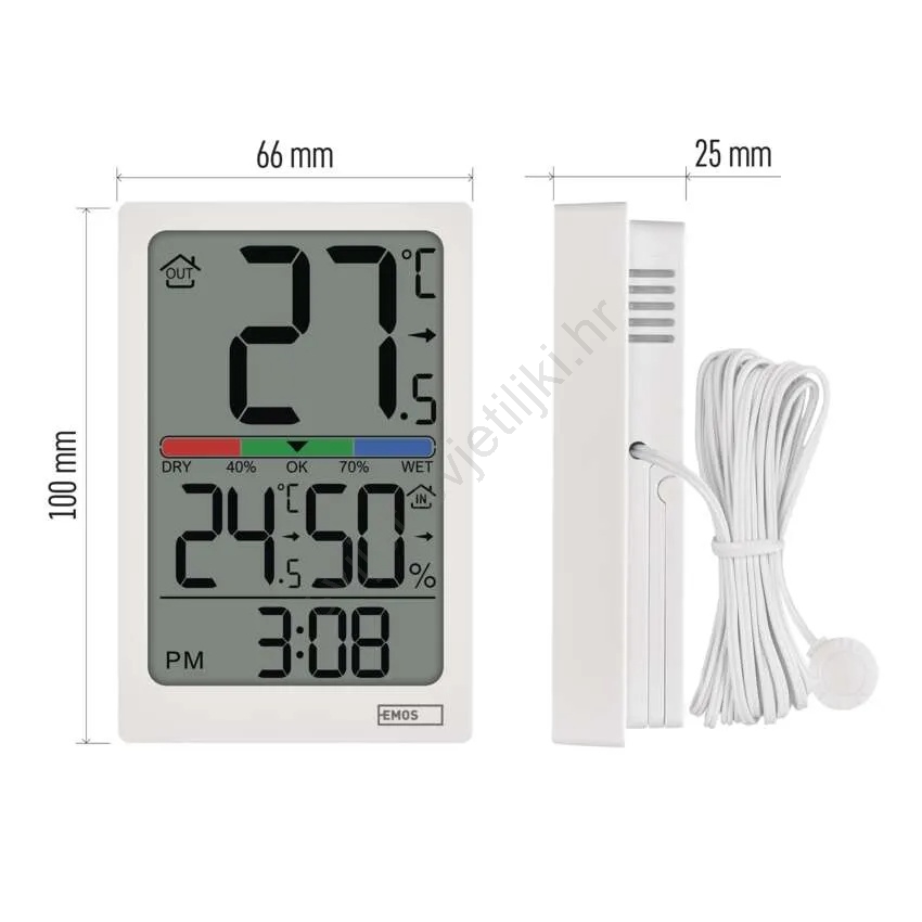 Digitalni termometar s higrometrom, 2x AAA, bijeli