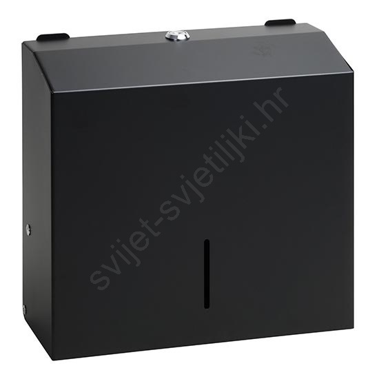 • Moderan crni dozator za papirnate ručnike za elegantan izgled kupaonice.