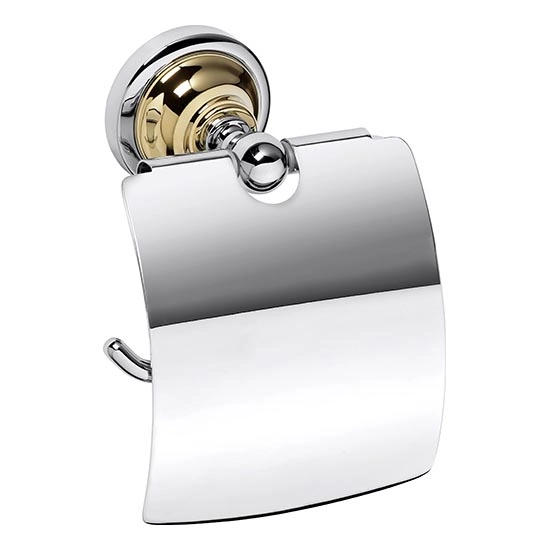 • Elegantni držač toaletnog papira s poklopcem u kombinaciji zlata i kroma.