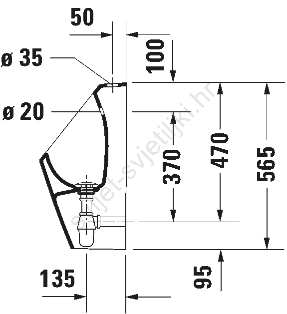 • Pisuar ima gornji dovod vode, što omogućuje diskretno vođenje cijevi i jednostavnu ugradnju.