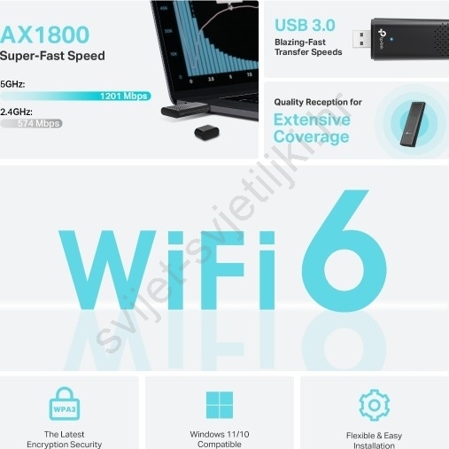 • Brzi Wi-Fi 6 - Prekoračite gigabitne granice brzinama do 1201 Mb/s (5 GHz) + 574 Mb/s (2,4 GHz).