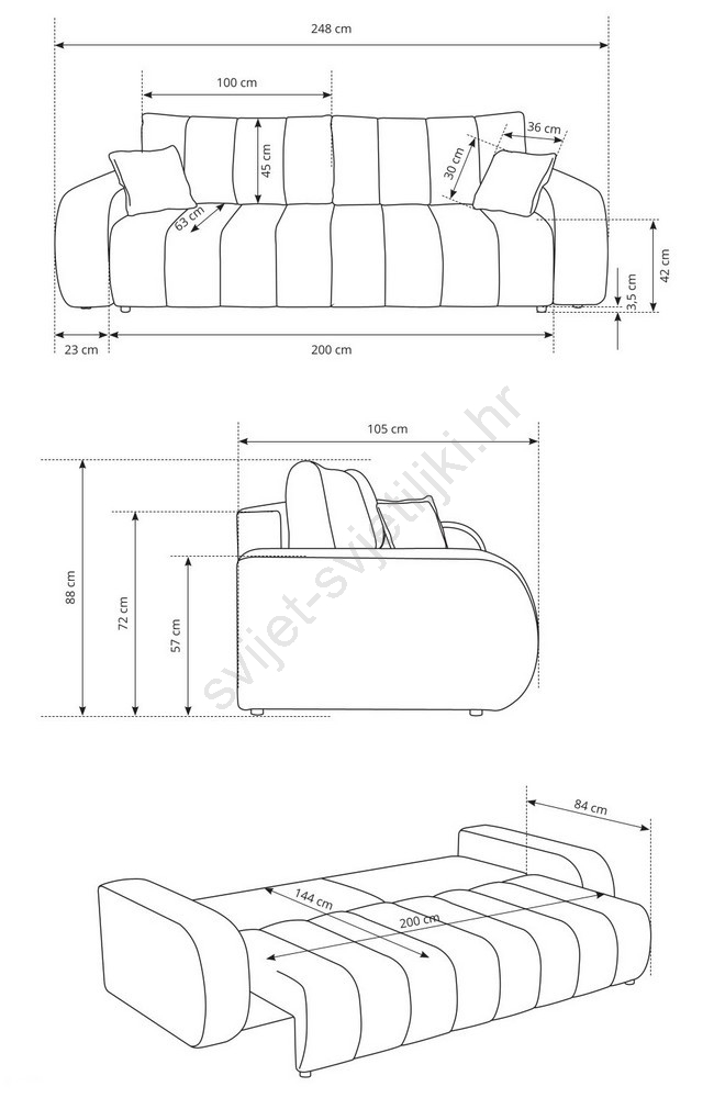 • Stražnji dio trosjeda presvučen je kvalitetnim tapeciranjem, što omogućuje postavljanje trosjeda slobodno u prostoru.
