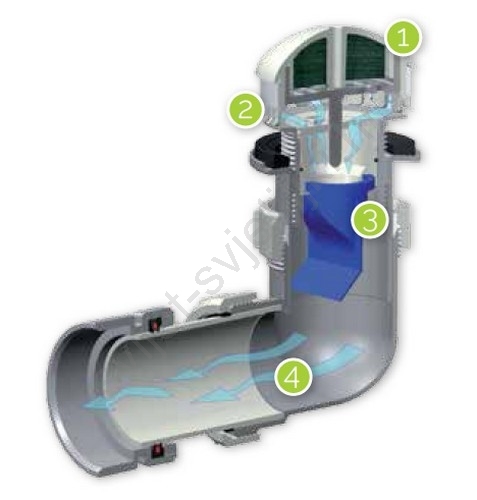 • Na slici u galeriji prikazan je presjek koji objašnjava princip rada pisuara bez vode EcoStep P1.1: