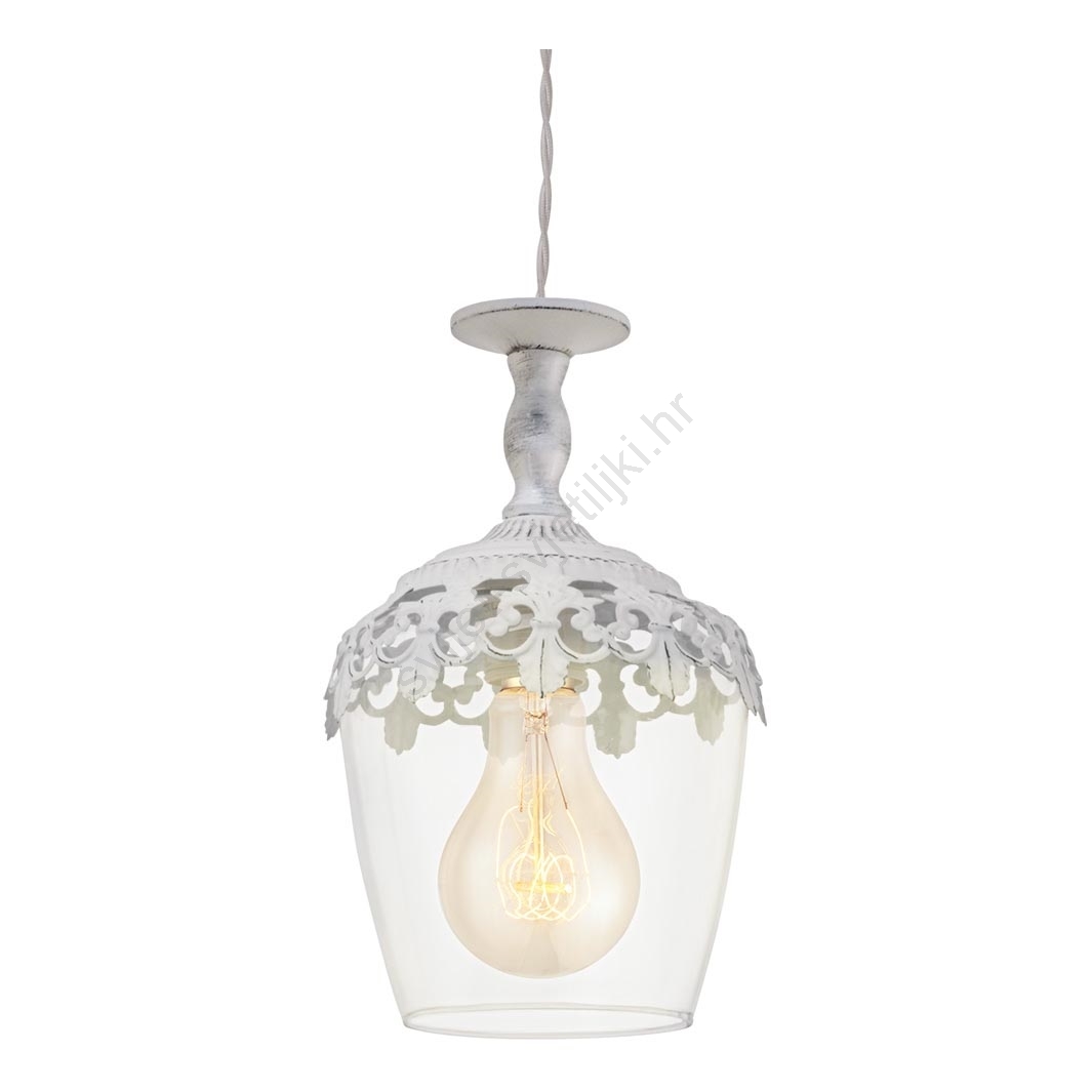 • Stakleni abažur je pričvršćen u konstrukciji od bijelog patiniranog metala.