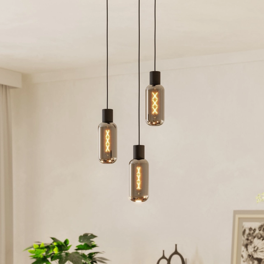 Eglo - Viseća svjetiljka na kabelu 3xE27/4W/230V crna/zadimljena