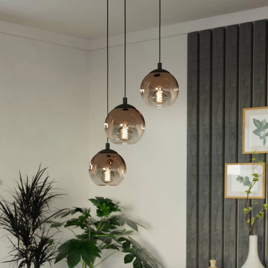 Eglo - Luster na sajli 3xE27/60W/230V crna/bež/zadimljena karakterizira lijep i funkcionalan dizajn. Za svjetiljku je prikladna žarulja s bazom E27. Ovdje možete kupiti i druge žarulje po povoljnim cijenama. Bit će zanimljiv dodatak Vašem domu.
