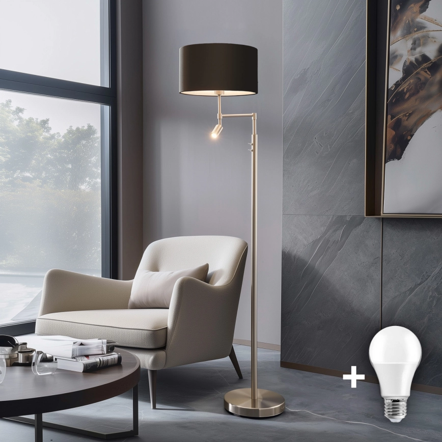 • Eglo - LED podna svjetiljka TUNJA 1xE27/60W/230V + LED/2,1W Ø 38 cm matni krom/smeđa