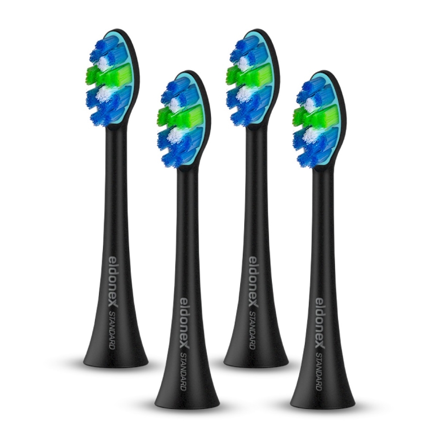 • Komplet od četiri zamjenske glave STANDARD za soničnu četkicu za zube Eldonex SonicPro.