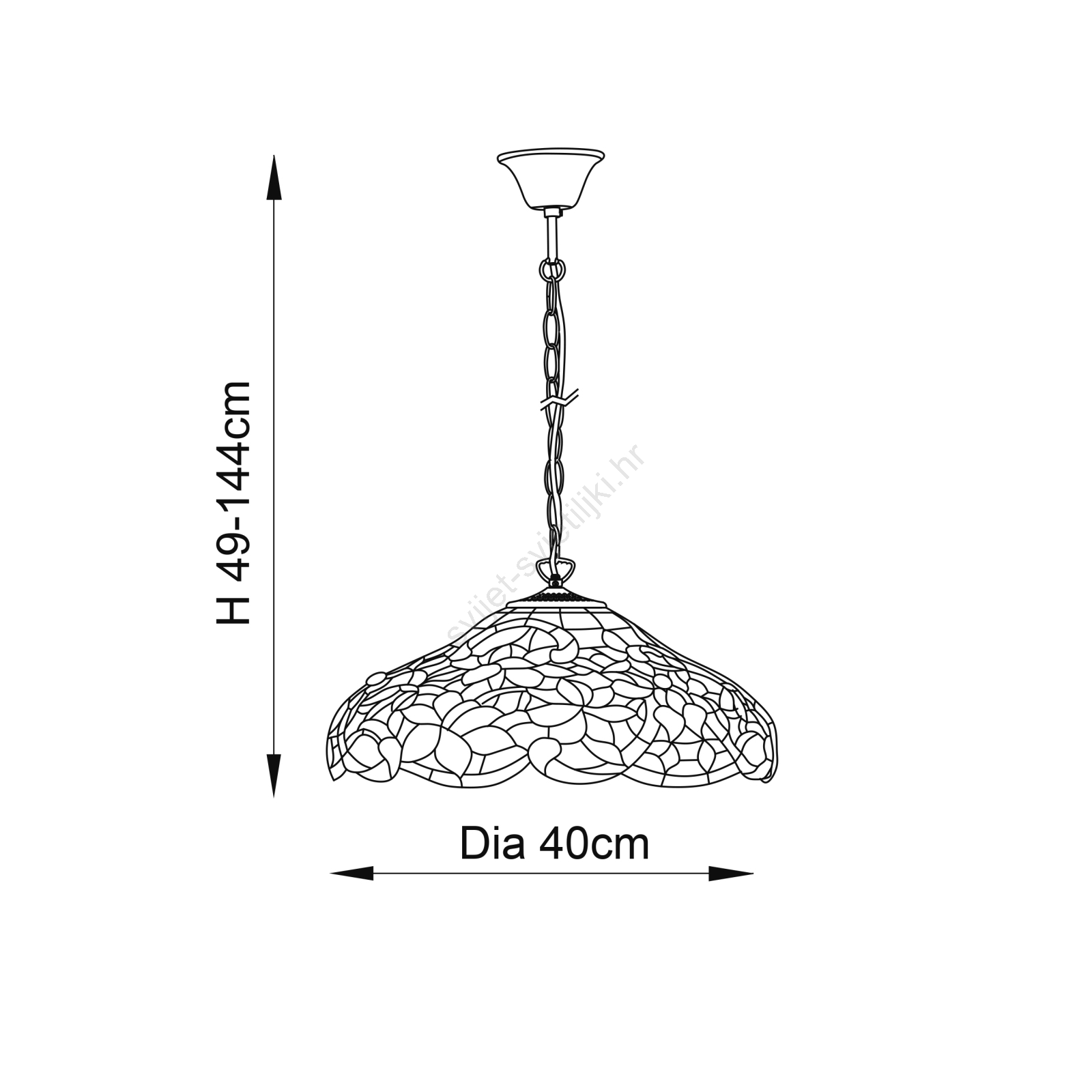 Endon 64325 - Luster na lancu Tiffany SULLIVAN 1xE27/60W/230V Ø 40 cm karakterizira lijep i funkcionalan dizajn. Za svjetiljku je prikladna žarulja s bazom E27. Ovdje možete kupiti i druge žarulje po povoljnim cijenama. Bit će zanimljiv dodatak Vašem domu.