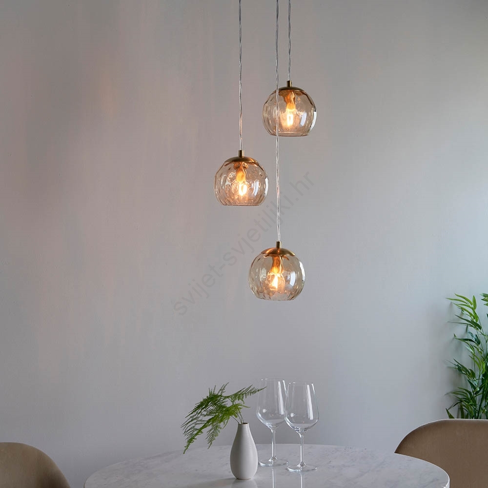 Endon 91971 - Luster na sajli DIMPLE 3xE14/7W/230V zlatna/dimljeno bež karakterizira lijep i funkcionalan dizajn. Za svjetiljku je prikladna žarulja s bazom E14. Ovdje možete kupiti i druge žarulje po povoljnim cijenama. Bit će zanimljiv dodatak Vašem domu.