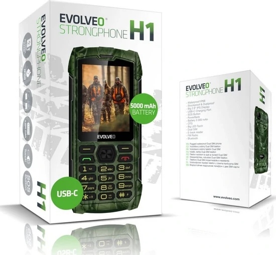 Evolveo - StrongPhone H1, vodootporan Dual SIM telefon, lovska kamuflaža