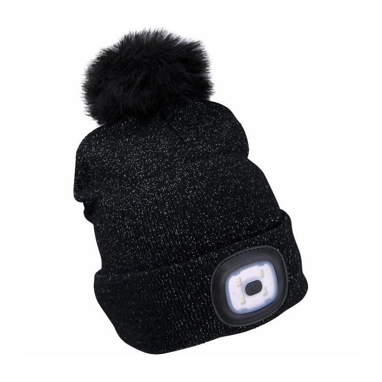Extol - Kapa s čeonom lampom i USB načinom punjenja 300 mAh crna s pomponom vel. UNI