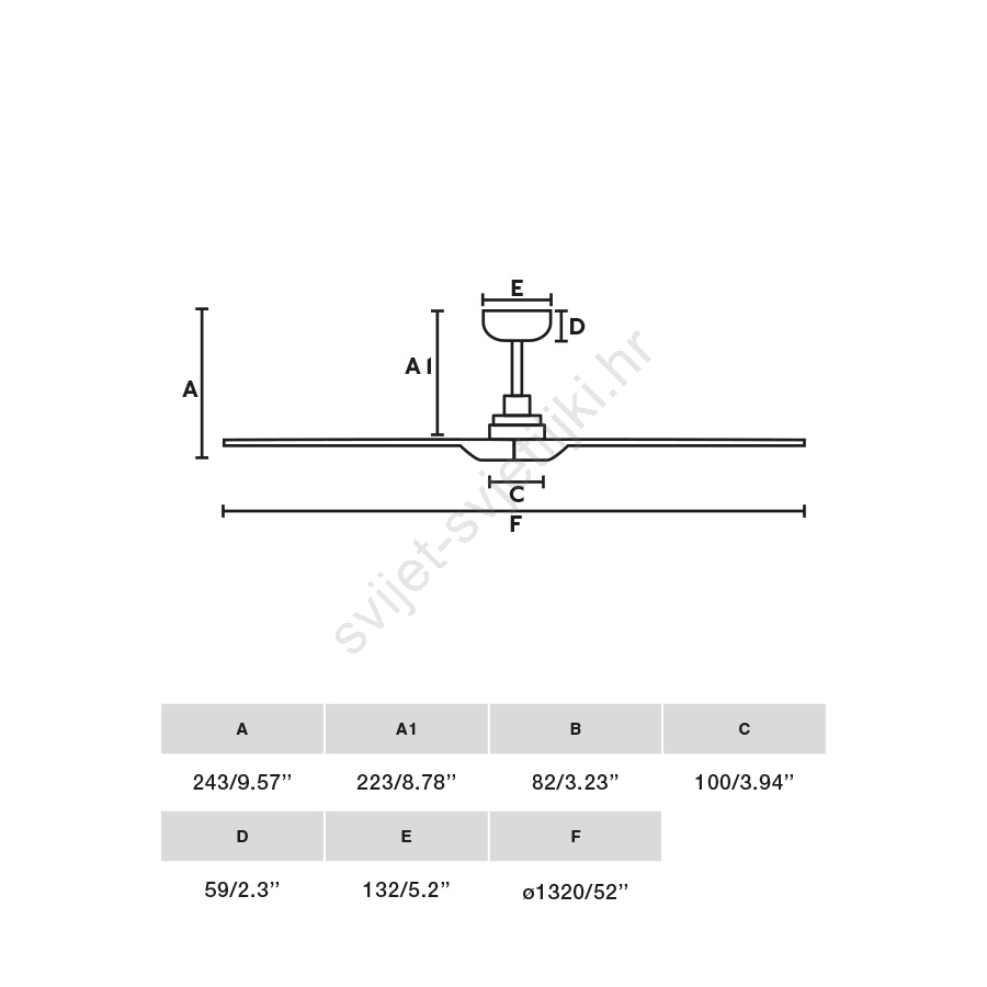 • DC motor ima 6 podesivih brzina s potrošnjom od 4-5-7-13-22-32W i 58-75-94-124-152-173 okr./min, ovisno o brzini.