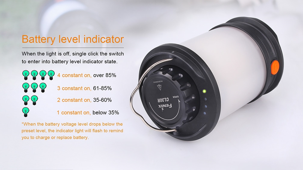 • U hitnim slučajevima svjetiljku je moguće napajati samo jednom ili dvije baterije (vrijeme rada proporcionalno se smanjuje), moguće je koristiti i šest jednokratnih CR123A baterija (nisu uključene u paket).