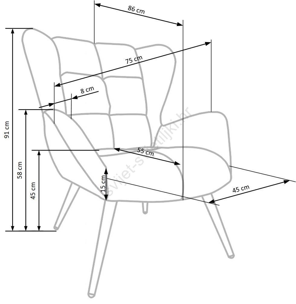 • Ova šarmantna i elegantna fotelja dizajnirana je da pruži maksimalnu udobnost tijekom čitanja i opuštanja.