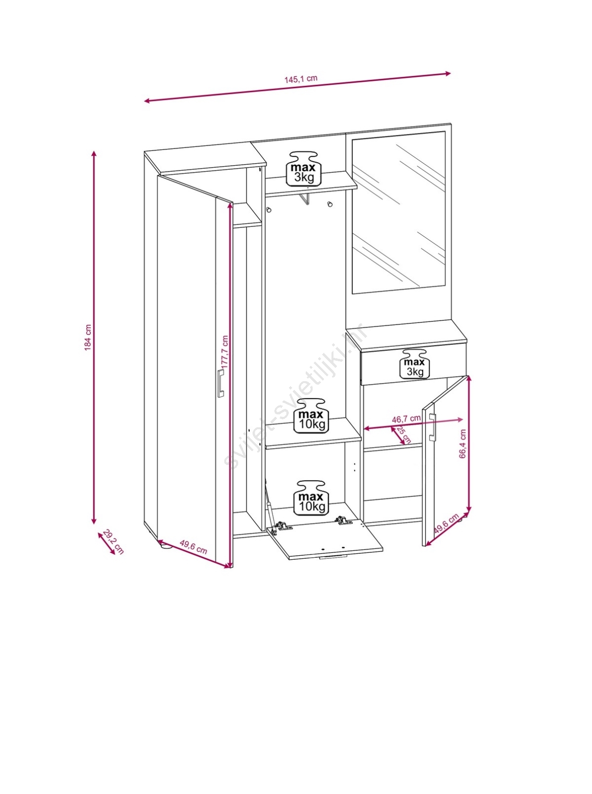 • Visoki bočni ormar omogućit će vam vješanje i spremanje kaputa i jakni.