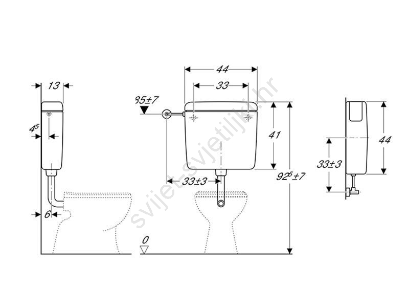• Nisko postavljen vodokotlić za površinsku ugradnju.