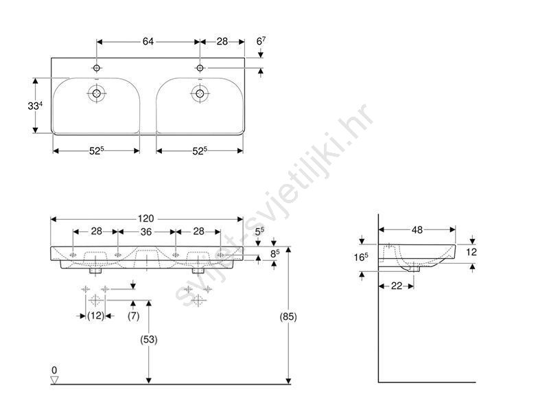 • Geberit 500.224.01.1 - Zidni dvostruki umivaonik Smyle Square 120x48 cm keramika/bijela