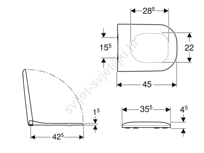 • Ima automatsko meko zatvaranje i prekriva WC poklopac.