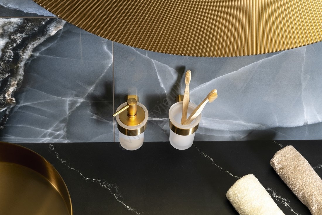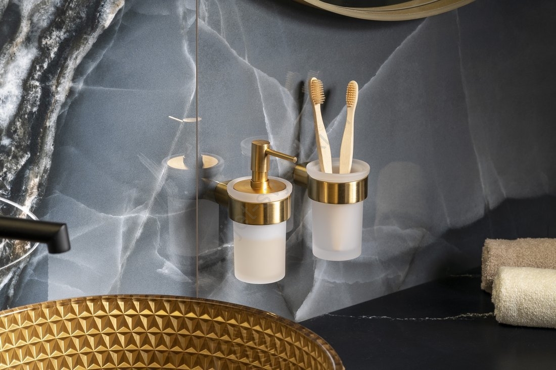 Gedy - Zidni držač za četkice za zube PIRENEI mliječno staklo/matno zlato