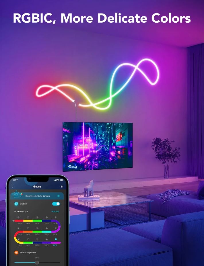 Govee - Neon SMART fleksibilna LED traka - RGBIC - 3m Wi-Fi IP67