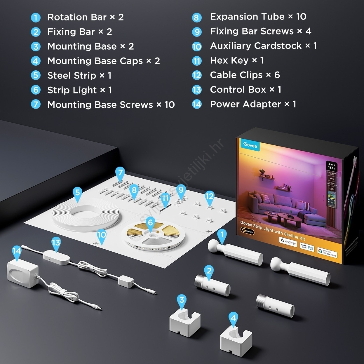• Govee - RGBICWW viseća LED traka 36W/24V, 4m, Skyline Matter, Wi‑Fi