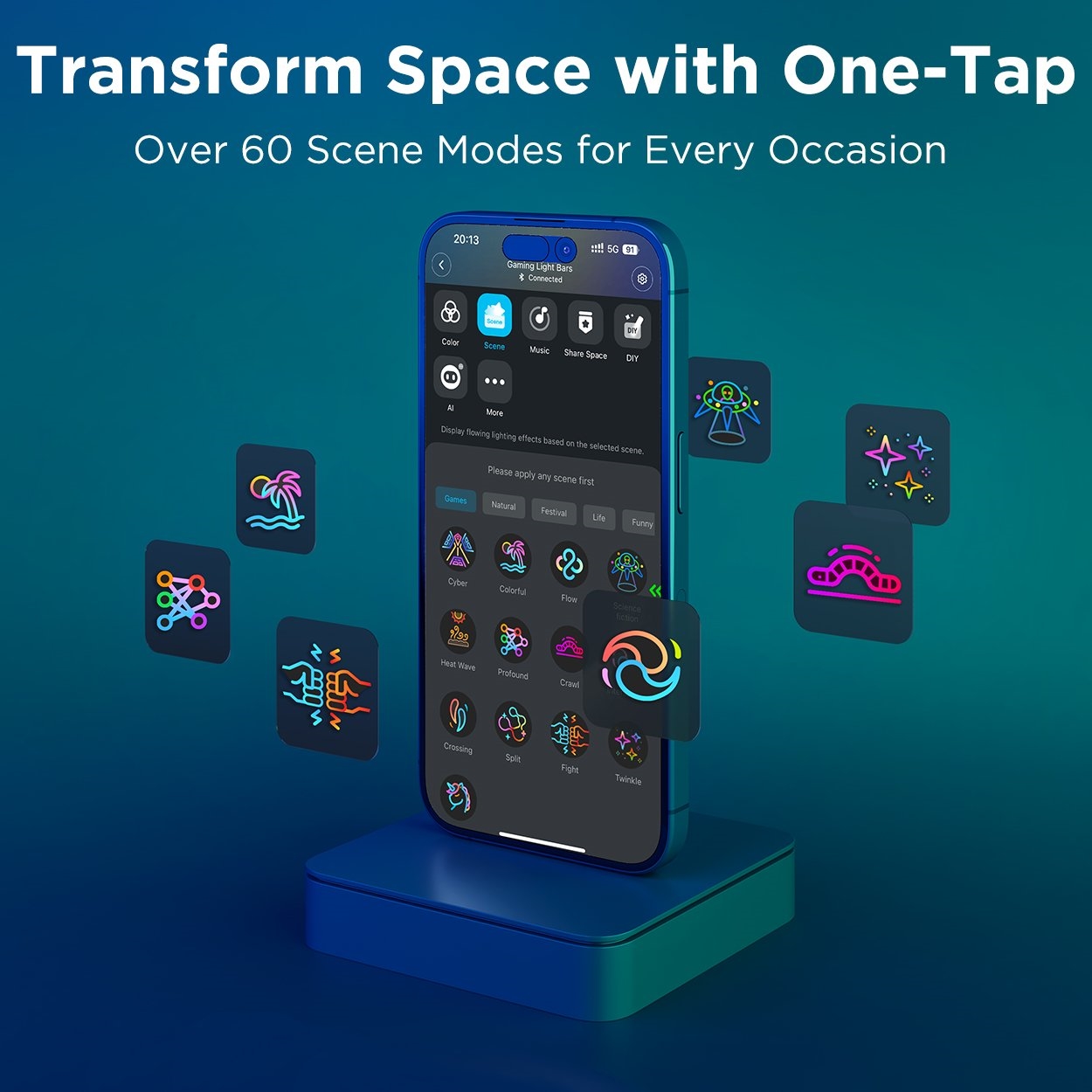 • Glazbeni način – svjetla reagiraju na ritam i zvuk te oživljavaju svaku igru i film.