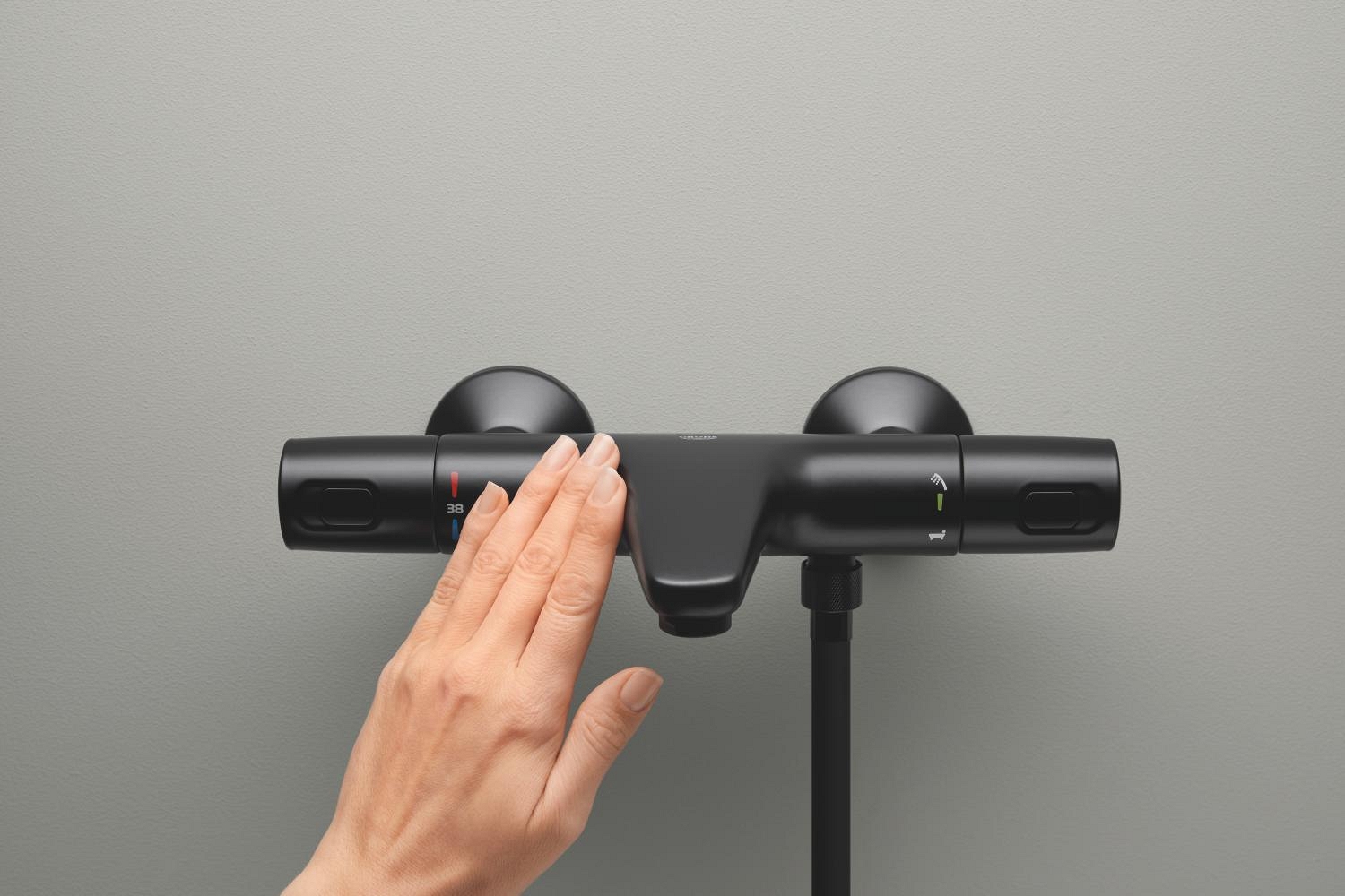 • Sigurnosni gumb GROHE SafeStop postavljen na 38 °C štiti od nenamjernog povećanja temperature.