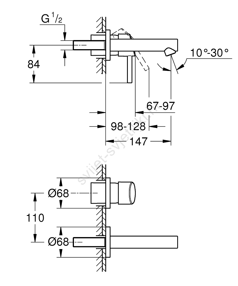 • Razmak između središta 110 mm i duljina izljevne cijevi 147 mm za optimalnu udobnost.