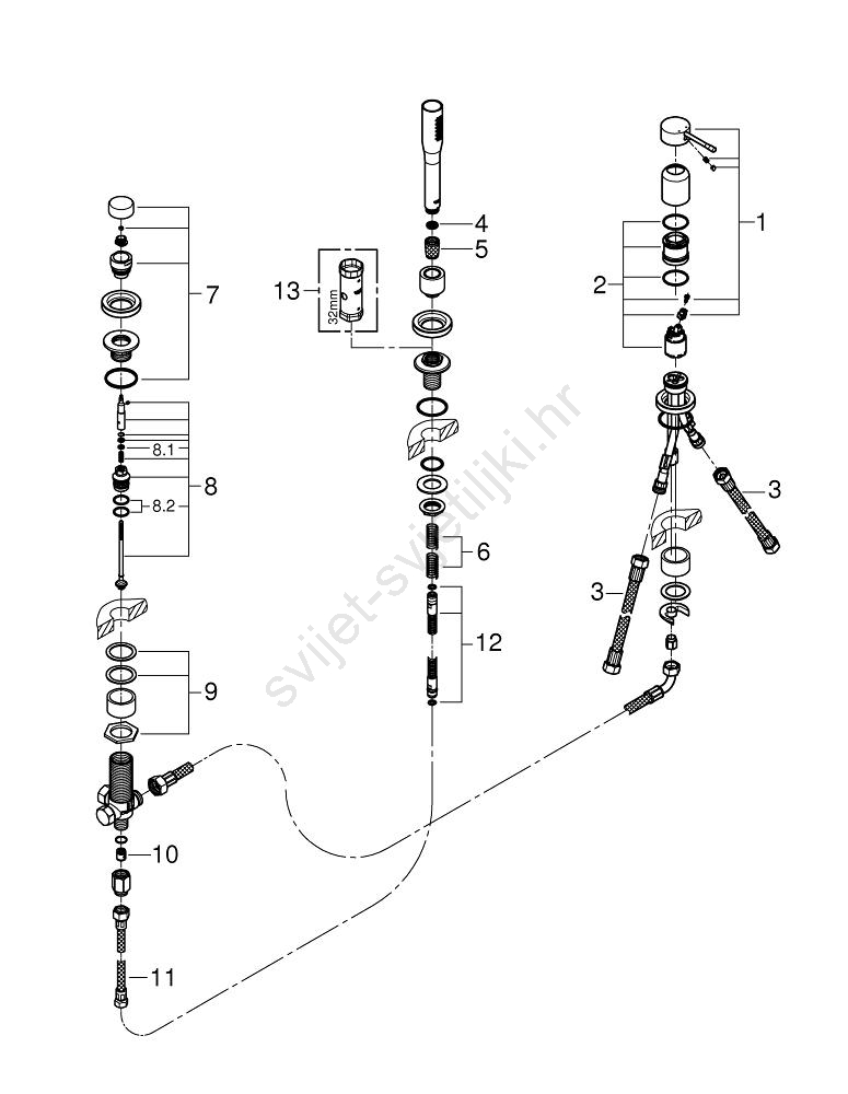 • Priključak za tuš crijevo osigurava kompatibilnost s različitim tuš sustavima.