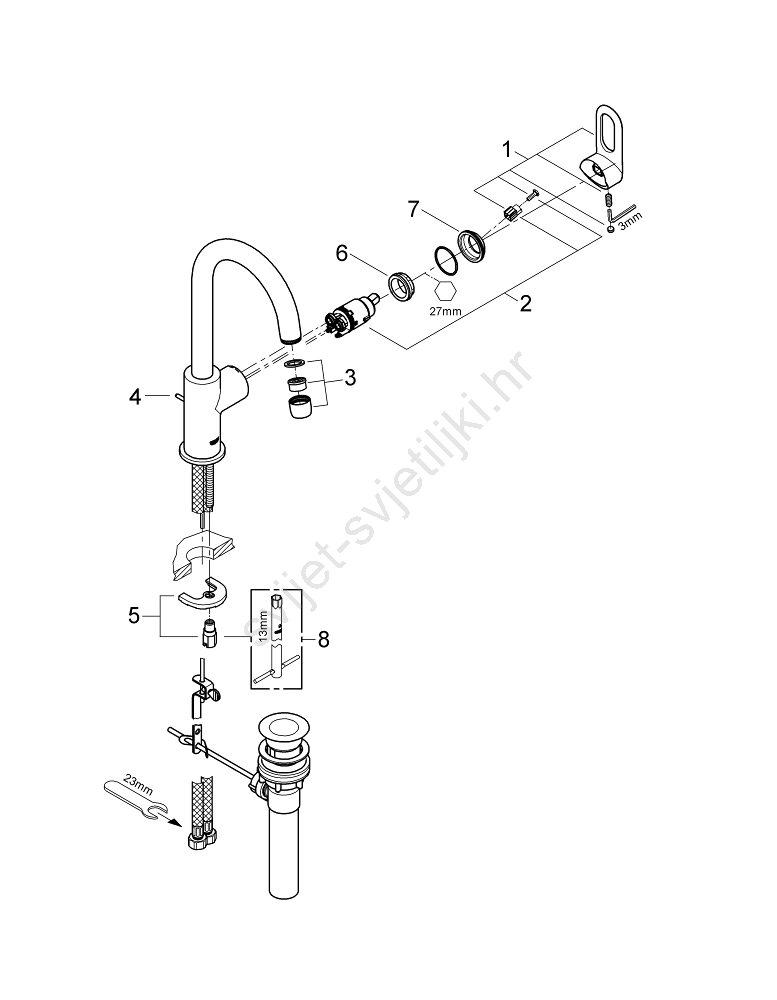• Keramička kartuša GROHE Long-Life 28 mm za glatko i precizno upravljanje.