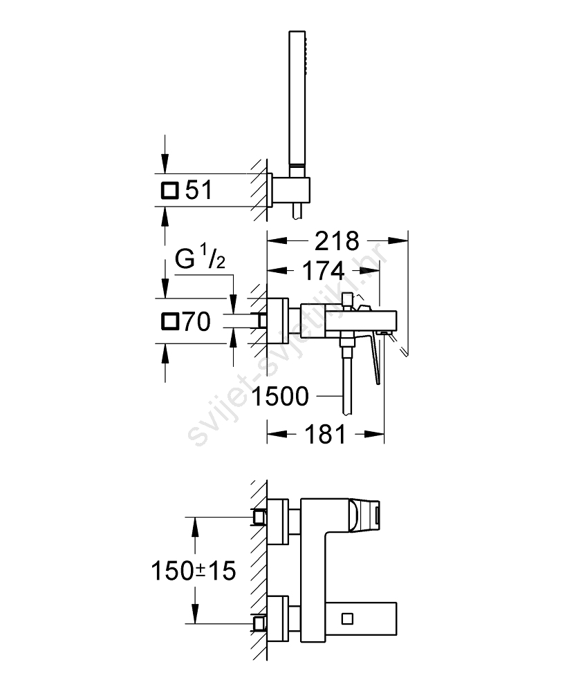 • U paketu se nalazi ručni tuš (27 698), zidni držač za tuš (27 693) i tuš crijevo 1500 mm (28 151 000).
