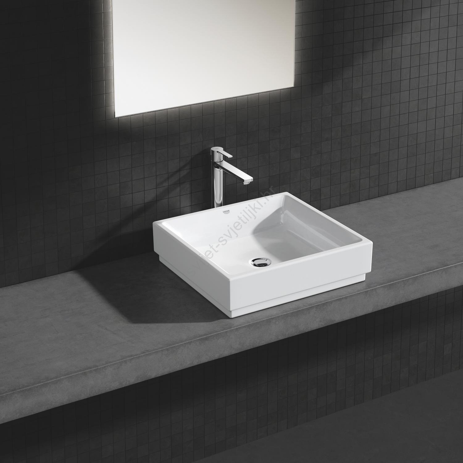 • Elegantna jednoručna umivaonička miješalica GROHE Lineare s izuzetno visokim izljevom, idealna za samostojeće umivaonike.