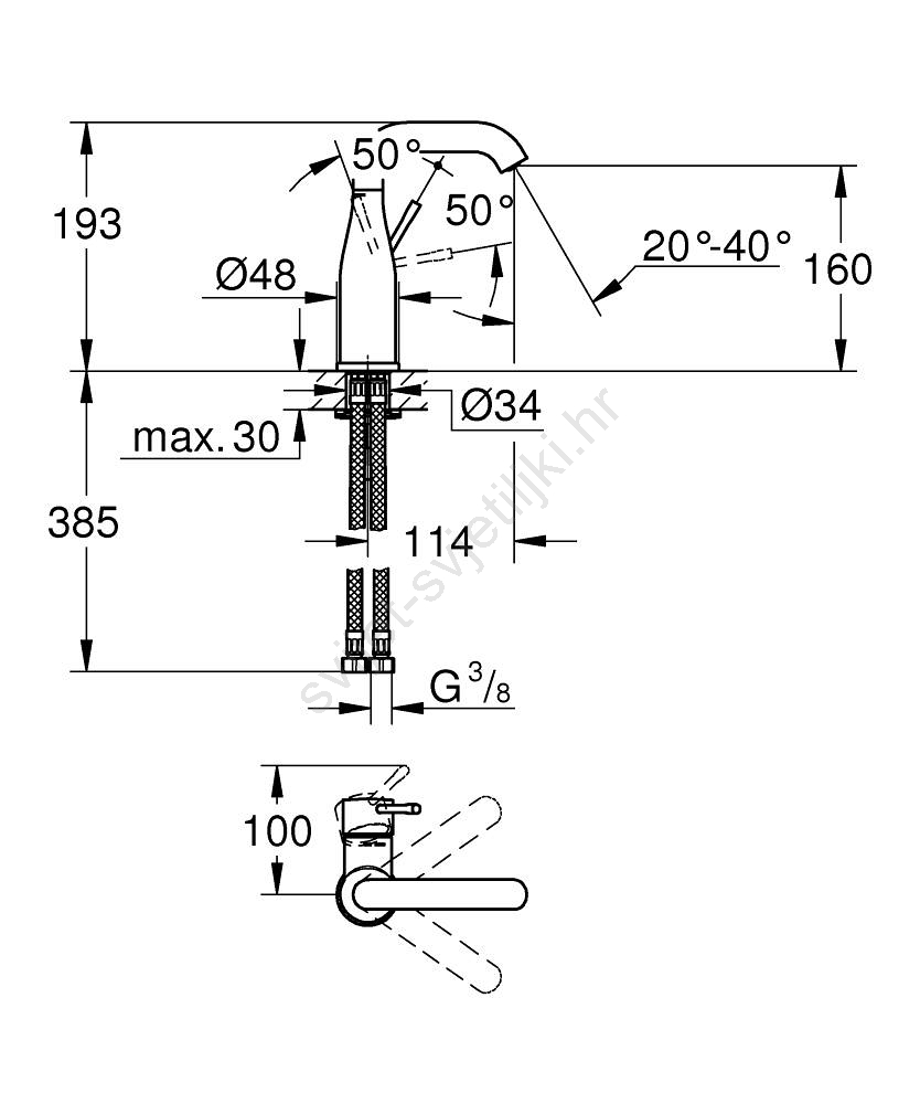 • Jednoručna umivaonička miješalica GROHE Essence, veličina M, za ugradnju u jednu rupu.