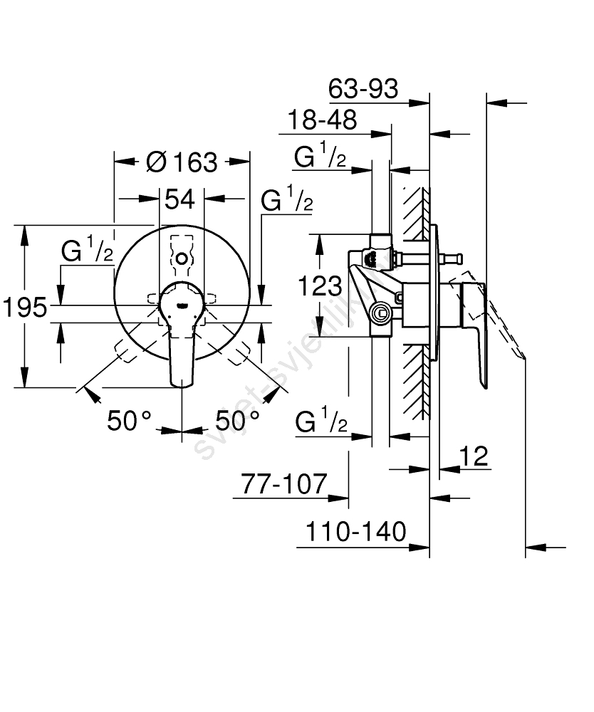 • 46 mm keramička kartuša GROHE SilkMove osigurava glatko i precizno podešavanje temperature i protoka vode.